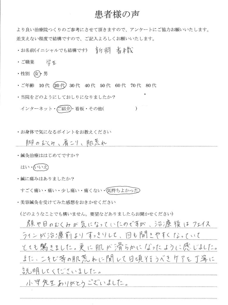 新渕香織さま 20代 学生