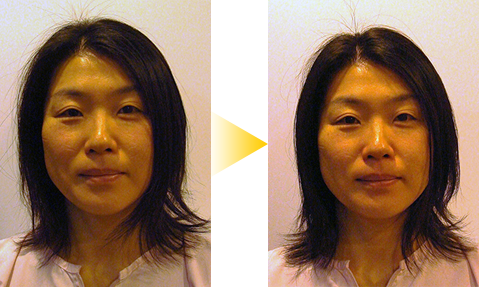 お若く、お肌の状態は良かったのですが、前後で比べると顔の輪郭や目元がスッキリした印象になりました。